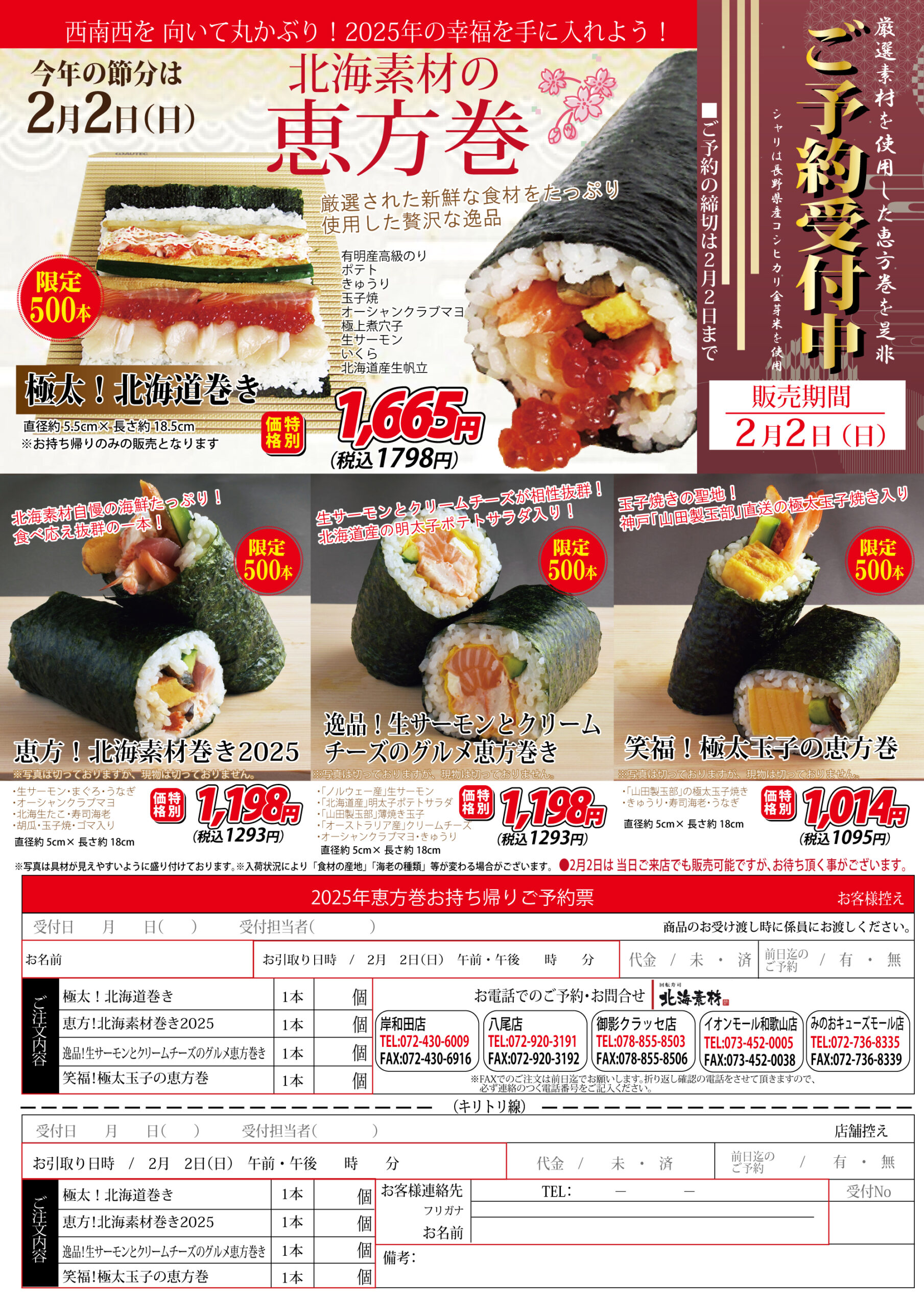 毎年完売!北海素材の恵方巻/御予約受付中です!!